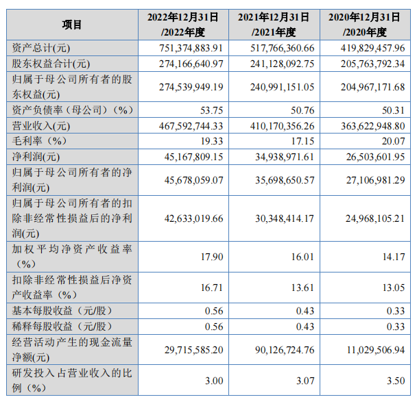 2022年度,公司實(shí)現(xiàn)營業(yè)收入4.68億元,同比增長(zhǎng)14%,實(shí)現(xiàn)凈利潤4568萬元,同比增長(zhǎng)28%。其中外銷占比約為9.98%。此外公司應(yīng)收款較高為2.88億(2022)。