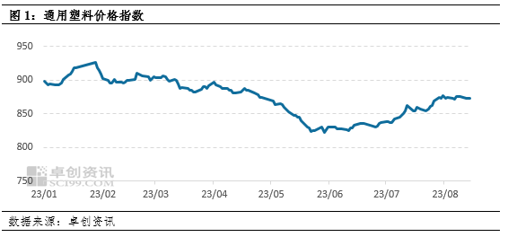 塑料價(jià)格指數(shù)形成震蕩走勢,價(jià)格重心小幅下移,8月16日收于872.5,較月初下移0.78點(diǎn),實(shí)際走勢與《塑料價(jià)格指數(shù)初現(xiàn)彩虹,但難以維系》中預(yù)測結(jié)論一致。價(jià)格波動的原因在于國內(nèi)需求恢復(fù)不及預(yù)期,然而塑料產(chǎn)量隨著檢修結(jié)束進(jìn)一步走高,原油市場走勢雖然跌宕起伏,但仍處于高位,對塑料市場產(chǎn)生支撐。
