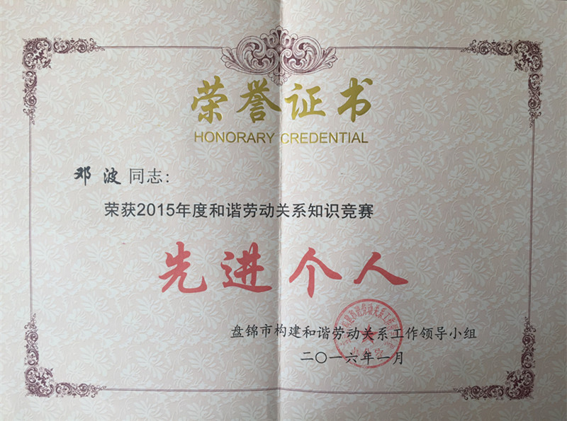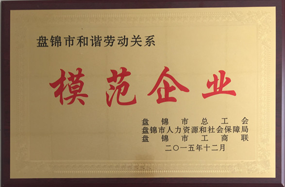 • 恭賀我司榮獲2015年盤錦市和諧勞動關(guān)系模范企業(yè)